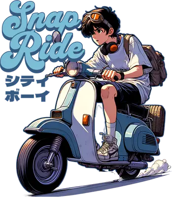 Anime City Boy Scooter Snap Ride DTF Transfer - Retro Urban Style