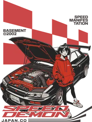 Unleash your passion for Japanese car culture and anime style with this striking DTF transfer featuring a cool anime girl in a red hoodie, casually leaning against a detailed black JDM sports car with its hood open, showcasing the engine. The design is framed by a dynamic red and black checkered flag pattern and bold 'SPEED DEMON' typography. This ready to press transfer captures the essence of street racing and tuner aesthetics, perfect for making a statement. This design is perfect for JDM enthusiasts, anime fans, car club members, and anyone who loves unique streetwear. It makes an excellent gift for birthdays, car meets, or just because, allowing you to personalize apparel for yourself or friends. Crafters, small t-shirt businesses, and Etsy sellers will find this iron on transfer an easy way to create high-demand merchandise. It's a fantastic heat transfer design for customizing gear for automotive events or personal collections. Applying this heat press transfer is simple and efficient. It works seamlessly on a wide range of fabrics including cotton, polyester, and cotton-poly blends, and even nylon, ensuring versatility for your projects. Achieve professional results using a heat press at 300-325°F for 15 seconds with medium pressure, or apply with a household iron. There’s no tedious weeding required—just peel and press! Ideal for custom t-shirts, hoodies, sweatshirts, denim jackets, tote bags, or even unique pillow covers. For best longevity, wash garments inside out and tumble dry low. Experience premium quality with this ready to press transfer, offering vibrant, full-color printing and exceptional detail that stands out. The design is crack-resistant, durable, and boasts a soft, lightweight feel unlike bulky vinyl. Each direct to film transfer is meticulously printed on high-grade DTF film, featuring a robust adhesive backing that guarantees professional and long-lasting application every time you create.
