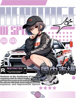 Anime Girl JDM GT-R Streetwear DTF Transfer | Heat Press Ready