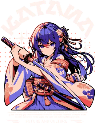 Anime Katana Girl DTF Transfer | Japanese Warrior Kimono Design