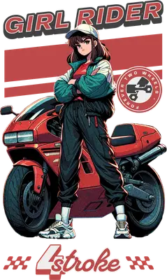 Anime Style Girl & Motorcycle Heat Press Transfer - 4 Stroke