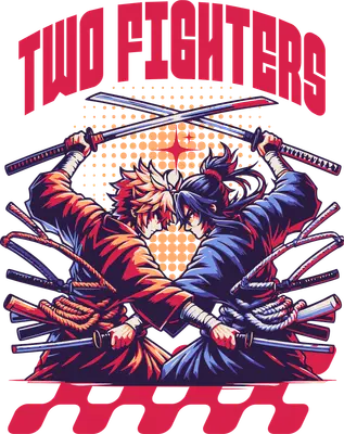 Anime Two Fighters Katana DTF Transfer | Ready to Press Sword Duel Design
