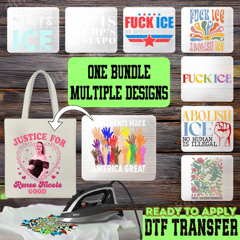See allIgnite your voice with this powerful bundle of social justice DTF transfers, featuring designs to express your stance on critical issues. This collection includes bold statements like "F*CK ICE No Human Is Illegal," "Immigrants Make America Great," and "Abolish ICE," alongside artistic renditions such as "Protect and Defend Immigrants." Each high-quality DTF transfer is crafted for vibrant impact and is truly ready to press, simplifying your customization projects. This essential apparel transfer bundle is perfect for activists, human rights advocates, and anyone passionate about social justice and immigration reform. Ideal for protests, rallies, community events, or everyday wear, these designs allow you to show solidarity and spark conversations. They also make thoughtful gifts for friends and family who actively support these vital causes. Applying these direct to film transfers is incredibly straightforward, transforming ordinary garments into powerful statements. Our heat press designs adhere flawlessly to cotton, polyester, and most fabric blends. For best results, use a heat press at 300-325°F for 15 seconds with medium pressure. A household iron can also be used. There’s no tedious weeding required, making your customization quick and hassle-free. Experience the superior quality of our professional-grade DTF film. These heat transfers boast exceptional durability, ensuring your message remains vivid and crack-resistant even after many washes. The prints are remarkably soft to the touch, integrating seamlessly with your garment without a heavy feel. With strong adhesive, your iron on transfers will last, proudly displaying your commitment to a more just world.