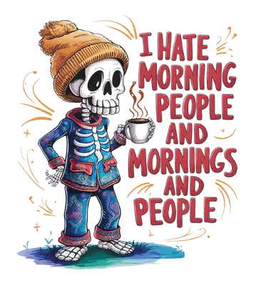 Anti-Morning Skeleton Coffee DTF Transfer | Sarcastic Heat Press Design