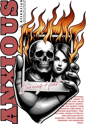 Anxious Burning Heart Skull Woman Tattoo Style DTF Transfer