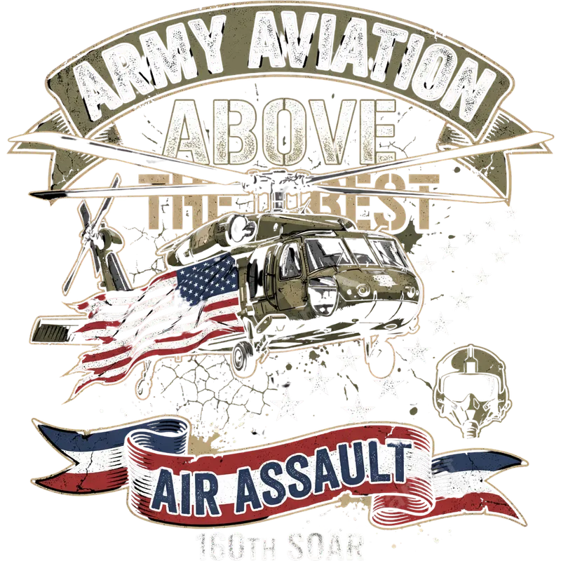 See allThis powerful DTF transfer showcases a detailed Army Black Hawk helicopter emblazoned with a flowing American flag, embodying the spirit of elite Army Aviation. Featuring "ARMY AVIATION," "ABOVE THE BEST," "AIR ASSAULT," and "160TH SOAR," this ready to press design has a distressed, vintage military aesthetic, perfect for those who honor valor and service. The rugged texture and patriotic elements capture the dedication of our airborne forces. This bold heat transfer is ideal for active military personnel, veterans, military families, and supporters of the US Army's special operations. It makes an excellent gift for Veterans Day, Memorial Day, patriotic holidays, or birthdays for anyone proud of their Army Aviation or Air Assault heritage. Easily create custom apparel for reunions, events, or everyday wear to show unwavering support. This iron on transfer helps you personalize gear with pride. Applying this heat press ready design is simple and quick, making it perfect for custom t-shirts, hoodies, and more. It works flawlessly on cotton, polyester, and most fabric blends. Use a heat press at 300-325°F for 15 seconds with medium pressure, then allow to cool before peeling. For home users, a household iron can also be used with firm, even pressure. Unlike vinyl transfers, there's absolutely no weeding required, saving you time and effort. Our premium apparel transfer ensures a vibrant, durable finish that stands the test of time. Crafted with professional-grade DTF film and strong adhesive, this design offers superior washability, resisting cracking and fading. The result is a soft-to-touch graphic that integrates seamlessly into your garment, feeling lightweight and comfortable. Create high-quality, long-lasting military-themed shirts and accessories with ease.