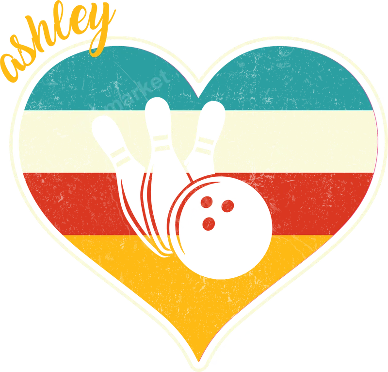 Ashley Retro Bowling Heart DTF Transfer | Personalized Sports Design