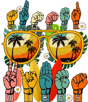 See allThis vibrant DTF transfer brings all the fun and inclusivity of summer to your apparel! Featuring 'SUMMER VIBES' spelled out in colorful American Sign Language (ASL) finger spelling, this design captures a joyful, retro aesthetic. Large sunglasses reflect a classic beach sunset with palm trees, complemented by subtle surfboards, tropical leaves, and cheerful daisies. It's a perfect ready to press design to add a unique, positive touch to any garment. This eye-catching design is ideal for ASL students, interpreters, members of the Deaf community and their allies, or anyone who loves the beach and retro style. It's an excellent choice for an iron on transfer for personal wear, gifts for friends, family, or as unique inventory for small businesses and crafters. Perfect for summer vacations, beach trips, or simply to spread positive vibes year-round. Applying this heat press transfer is simple and mess-free. It works flawlessly on a wide range of fabrics including cotton, polyester, cotton-poly blends, and even nylon. Just use a heat press at 300-325°F for 15 seconds with medium pressure, then peel. No weeding, no complex layering – just peel and press! Easily transform garments into custom t-shirts, hoodies, sweatshirts, tote bags, pillow covers, baby onesies, aprons, and denim jackets. For lasting durability, wash garments inside out and tumble dry low. Our ready to press transfers feature vibrant, full-color printing with exceptional detail, ensuring your designs pop. They are crack-resistant and soft to the touch, providing a professional finish without the heavy feel of vinyl. Each direct to film transfer is printed on premium DTF film with a strong adhesive backing, guaranteeing excellent adhesion and professional-quality results every time you press.