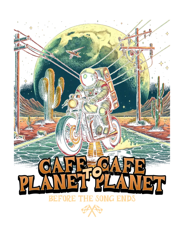 See allBlast off into style with this captivating DTF transfer featuring an astronaut cruising on a classic motorcycle through a vibrant desert landscape, all under the gaze of a colossal moon or distant planet. Power lines and towering cacti complete the retro sci-fi scene, with the adventurous slogan "CAFE TO CAFE PLANET TO PLANET" prominently displayed. This ready to press design encapsulates wanderlust and cosmic exploration, offering a truly unique aesthetic for your apparel. This distinct heat transfer is perfect for motorcycle enthusiasts, sci-fi fans, and anyone who loves a good adventure or a touch of retro cool. It makes an excellent gift for birthdays, Father's Day, or just because, allowing you to personalize t-shirts, jackets, or bags for friends, family, or yourself. Imagine this bold graphic on a custom shirt for your next road trip or music festival. Applying this iron on transfer is straightforward and efficient. It adheres beautifully to a wide range of materials, including cotton, polyester, and various fabric blends. For best results, use a heat press at 300-325°F for 15 seconds with medium pressure, then perform a cold peel. Even a household iron can be used with careful application. Best of all, there's no tedious weeding required, making your customization process quick and enjoyable. Our professional-grade DTF transfers deliver exceptional quality. Expect vibrant colors that pop, superior crack resistance for long-lasting wear, and a soft, smooth feel that integrates seamlessly with the fabric. Each heat press transfer is produced using premium DTF film and strong adhesive, ensuring your custom transfer not only looks fantastic but also stands up to countless washes.