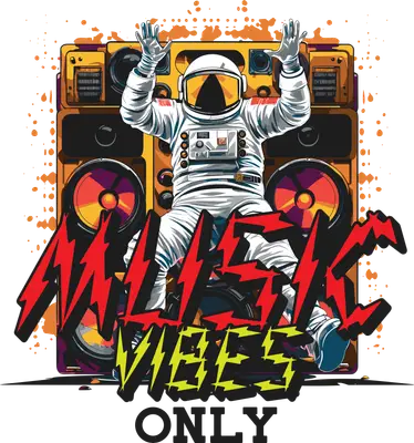 Astronaut Boombox Music Vibes Only DTF Transfer | Retro Hip Hop Ready to Press