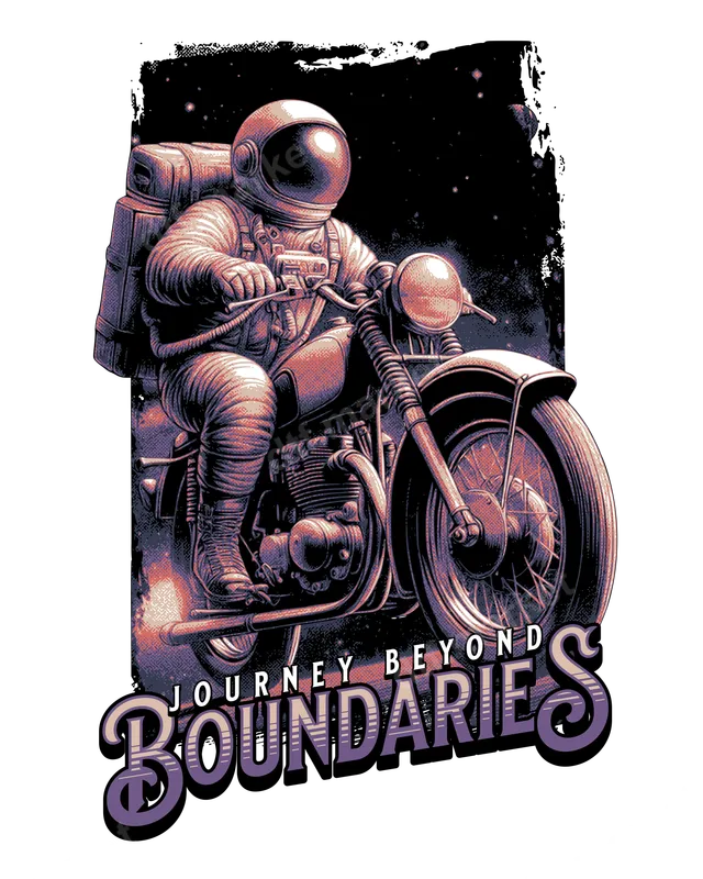See allBlast off into style with our captivating 'Journey Beyond Boundaries' DTF transfer. This striking design features a daring astronaut, fully geared up in a space suit, confidently riding a classic motorcycle through the vast expanse of a star-filled cosmos. The artwork boasts a vintage, distressed halftone aesthetic with rich purples and warm highlights, creating a truly unique and adventurous vibe. It’s the perfect direct to film transfer for anyone who dreams of exploration and pushing limits, a truly ready to press statement piece. This unique space explorer biker design is ideal for motorcycle enthusiasts, sci-fi fans, dreamers, and anyone with an adventurous spirit. Perfect for personalizing apparel for casual wear, themed events, or as a thoughtful gift for birthdays, Father's Day, or just to inspire someone to chase their dreams. Imagine this heat press transfer on custom t-shirts for a road trip crew or on a hoodie for a stargazer. Our premium iron on transfer ensures a hassle-free application. Simply use a heat press set to 300-325°F for 15 seconds with medium pressure. For best results, a hot peel is recommended, followed by a 5-second second press after peeling. This versatile heat press design works beautifully on cotton, polyester, and various fabric blends. Forget tedious weeding – your shirt design is ready to apply straight out of the package. Experience professional-grade results with our vibrant and durable apparel transfer. Each image is printed on high-quality DTF film using advanced techniques to ensure crisp details, brilliant colors, and a soft-to-touch finish that won't crack or fade over time. The strong adhesive provides excellent washability, ensuring your customized garment looks great for countless wears and washes. Elevate your wardrobe with a design that truly goes beyond the ordinary.