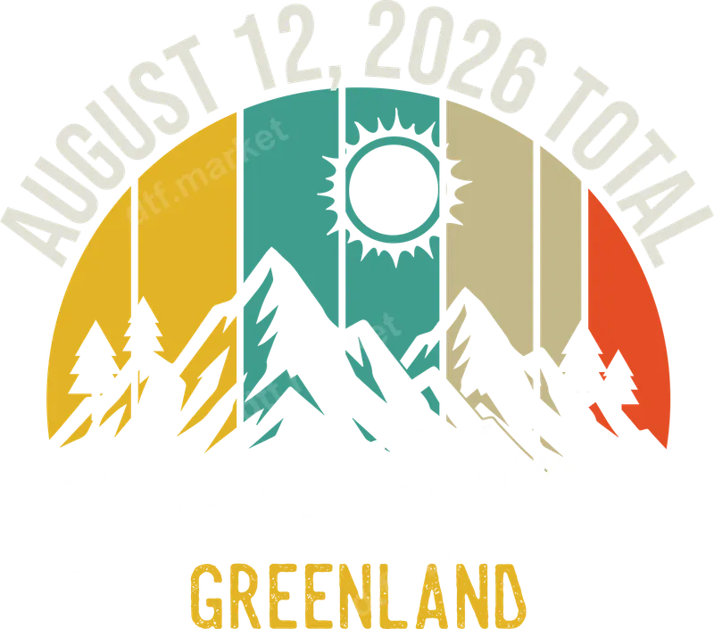 See allCapture the awe-inspiring celestial event of the August 12, 2026 Total Solar Eclipse in Greenland with this vintage-inspired DTF transfer. This unique design features a scenic mountain and pine forest landscape under a retro-striped sky, where the sun is dramatically eclipsed, all framed with the specific date and location. It's a high-quality, ready to press direct to film transfer that brings a nostalgic yet adventurous vibe to any garment or accessory. This commemorative design is perfect for astronomy enthusiasts, eclipse chasers, adventurous travelers planning to witness the event in Greenland, or anyone who appreciates celestial wonders and a retro aesthetic. It makes an excellent souvenir, a unique gift for a fellow stargazer, or a statement piece to wear during the eclipse journey. Create custom apparel for your eclipse viewing party or travel group with this eye-catching heat press design. Applying this iron on transfer is straightforward and efficient. It's designed for versatility, adhering beautifully to a wide range of fabrics including cotton, polyester, and their blends. Simply use a heat press at 300-325°F for 15 seconds with medium pressure, then cold peel for a professional finish. Unlike traditional vinyl transfers, there's absolutely no weeding required, saving you time and effort. Experience exceptional quality with our professional-grade DTF transfers. Each custom transfer boasts vibrant, true-to-color prints that are remarkably durable, crack-resistant, and soft to the touch, ensuring your design lasts through countless washes. Our premium film and strong adhesive provide a reliable bond, making this a long-lasting addition to your wardrobe or merchandise collection.