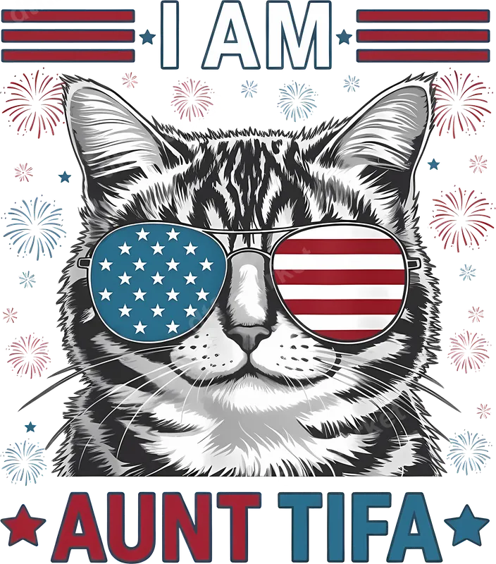 See allThis eye-catching DTF transfer features a cool cat wearing American flag sunglasses, surrounded by festive fireworks. The bold text "I AM AUNT TIFA" adds a humorous, sarcastic twist to a patriotic theme. This ready to press design is perfect for making a statement and is sure to spark conversation wherever you go, blending a love for felines with a touch of unique humor. This design is ideal for anyone with a playful sense of humor, cat lovers, and those who appreciate witty political satire. It makes a fantastic gift for friends or family members who are "Aunt Tifas" or simply enjoy a good pun. Perfect for Independence Day celebrations, casual wear, protest events, or simply expressing your personality with a unique heat transfer. Our premium direct to film transfers are incredibly easy to apply to a wide range of fabrics, including cotton, polyester, and blends. Simply use a heat press at 300-325°F for 15 seconds with medium, even pressure. For crafters without a heat press, a household iron can also be used with careful application. Best of all, there's no weeding required, making your custom apparel projects quick and hassle-free. Experience the exceptional quality of our t-shirt transfers, known for their vibrant colors and soft, durable finish. Each heat press design is crafted on professional-grade DTF film, ensuring excellent stretch, crack-resistance, and a strong adhesive bond that withstands countless washes. Create long-lasting, professional-looking garments with these high-quality apparel transfers.