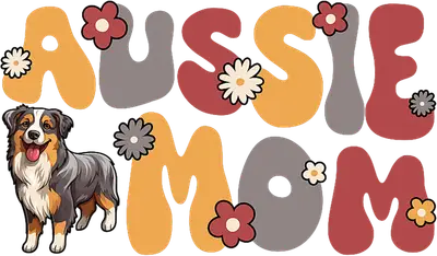Aussie Mom Australian Shepherd DTF Transfer with Retro Flowers