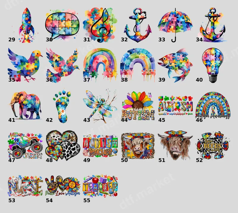 See allThis vibrant DTF transfer proudly displays the message "AUTISM accept understand love" alongside stylized hands formed by colorful puzzle pieces, the widely recognized symbol for autism awareness. The design radiates a message of understanding and compassion, making it a perfect statement piece. It’s a ready to press transfer, ensuring a quick and professional application to your chosen apparel. This powerful design is ideal for autism parents, dedicated caregivers, educators, and therapists, as well as anyone who advocates for neurodiversity. It's perfect for showing support during Autism Awareness Month in April, at fundraising events, community gatherings, or simply as an everyday expression of solidarity. It also makes a meaningful and thoughtful gift for friends or family members passionate about autism acceptance and understanding. Applying this direct to film transfer is incredibly simple and efficient. It works beautifully on a wide variety of fabrics, including cotton, polyester, and their blends, making it a versatile t-shirt transfer. For best results, use a heat press at 300-325°F for 15 seconds with medium pressure, then cold peel the film. A household iron can also be used with careful application. Unlike traditional vinyl transfers, there's no tedious weeding required – just press and go! This iron on decal provides professional results. Crafted with premium DTF film, this heat transfer offers exceptional quality and durability. The colors are incredibly vibrant, designed to remain brilliant wash after wash without cracking or fading. The transfer boasts a soft-to-touch finish that integrates seamlessly with your fabric, ensuring maximum comfort. You can trust this apparel transfer to deliver a professional, long-lasting design that looks fantastic on any garment.