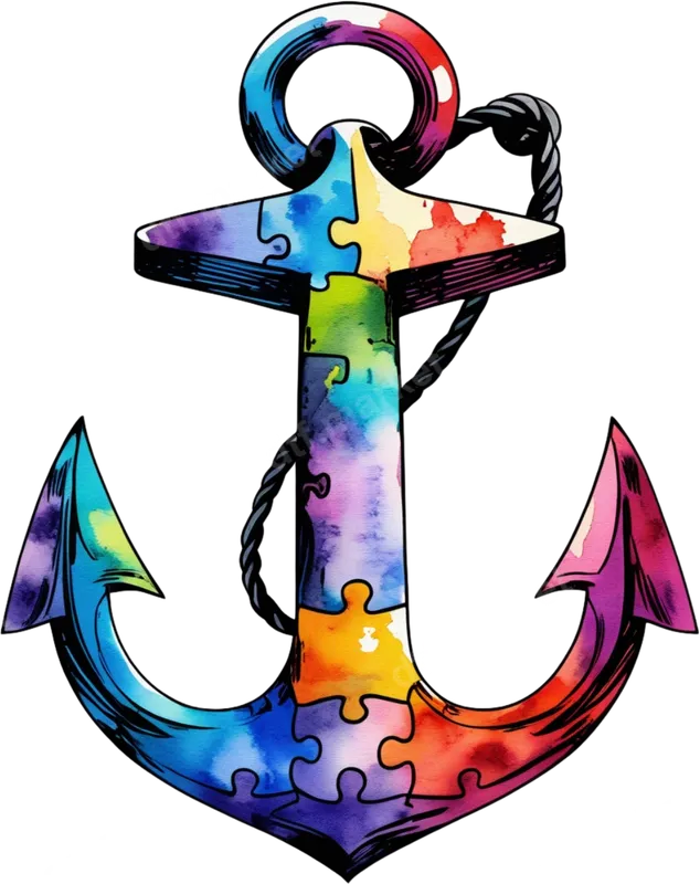 Autism Awareness Anchor DTF Transfer | Vibrant Puzzle Piece Watercolor Design