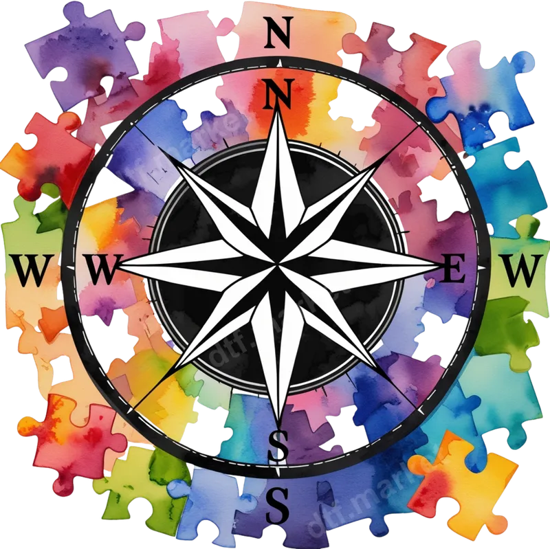Autism Awareness Compass Puzzle Watercolor DTF Transfer