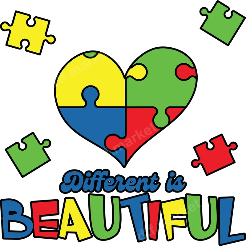 Autism Awareness Puzzle Heart 'Different is Beautiful' DTF Transfer