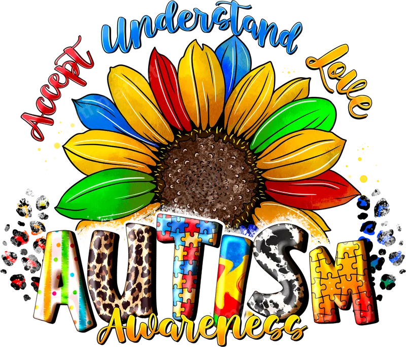 Autism Awareness Sunflower DTF Transfer | Accept Understand Love Design