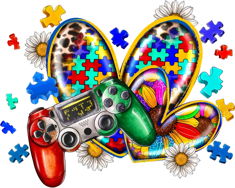Autism Puzzle Gamer Controller Hearts DTF Transfer
