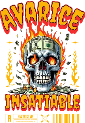 Avarice Insatiable Skull DTF Transfer | Flaming Money Streetwear Design