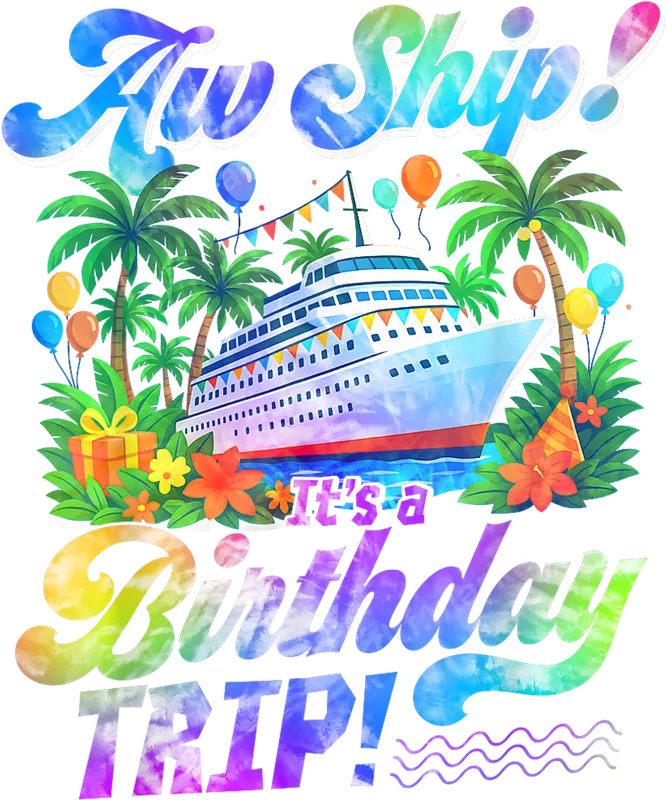 Aw Ship It's a Birthday Trip Cruise DTF Transfer Tropical Party Design