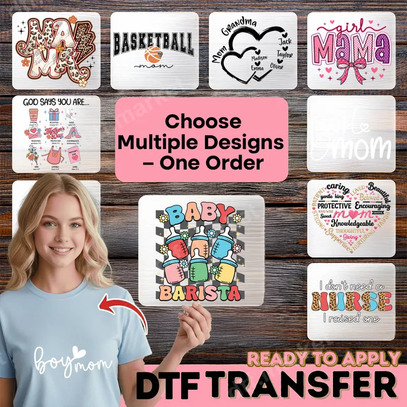 See allUnleash your inner coffee enthusiast with a parenting twist! This adorable 'Baby Barista' DTF transfer features a playful retro font, colorful baby bottles, checkerboard accents, and cute floral details. It's a whimsical nod to the daily grind of parenthood, served with humor and style. This high-quality direct to film transfer is ready to press for unique apparel. Perfect for new parents, baby shower gifts, or anyone who enjoys a good laugh and a strong cup of joe, this design celebrates the joyous chaos of raising little ones. It's ideal for Mother's Day, Father's Day, or an everyday statement piece for moms and dads who know coffee is key. Customize matching shirts for family events or fun reveals. Applying your 'Baby Barista' design is a breeze. Our heat press transfers work flawlessly on cotton, polyester, and various blends. For best results, use a heat press at 300-325°F for 15 seconds with medium pressure. A household iron can also achieve great results by pressing firmly for 20-30 seconds. Best of all, there's no tedious weeding required – just press and peel! Experience professional-grade results with our premium DTF transfers. Each iron on decal boasts incredibly vibrant colors, superior detail, and a soft, flexible feel that won't crack or peel. Made with durable DTF film and strong adhesive, your new t-shirt transfer will withstand countless washes, ensuring your 'Baby Barista' apparel looks fantastic for a long time. Express your unique parenting style!