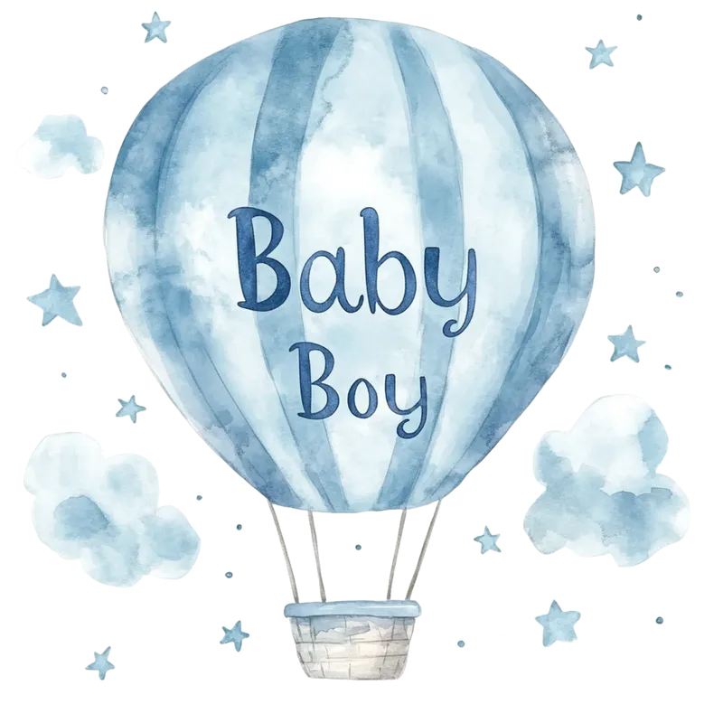 Baby Boy Watercolor Hot Air Balloon DTF Transfer for Gender Reveal