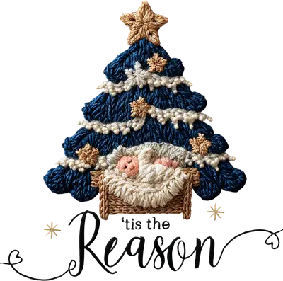 This charming DTF transfer features a beautifully rendered Christmas tree, crafted with a cozy, embroidered texture in rich blues, creams, and golden accents. Nestled at its base is the tender scene of baby Jesus in a manger, evoking warmth and spirituality. Below the tree, the elegant script reads, "'tis the Reason," perfectly capturing the true spirit of Christmas. This ready to press design brings a heartfelt, traditional, yet unique aesthetic to any garment. This meaningful design is perfect for Christian families, church groups, and anyone looking to celebrate the spiritual side of the holiday season. It makes a thoughtful gift for new parents celebrating their baby's first Christmas, or for grandmothers who cherish faith-based decorations. Small t-shirt businesses and crafters on platforms like Etsy will find this an excellent iron on transfer to create unique holiday apparel, ideal for Advent, Christmas gatherings, or family matching shirts. Use this heat transfer design to share a message of faith and joy. Applying this high-quality heat press transfer is simple and efficient. It works seamlessly on a wide range of materials, including cotton, polyester, cotton-poly blends, and even nylon. For best results, use a heat press at 300-325°F for 15 seconds with medium pressure, or follow instructions for a household iron. There's no tedious weeding required—simply peel the film and press your design. It's perfect for custom t-shirts, cozy hoodies, sweatshirts, baby onesies, tote bags, and even decorative pillow covers or aprons, allowing you to personalize items effortlessly. For lasting durability, wash garments inside out and tumble dry low. Our ready to press transfer ensures vibrant, full-color printing with exceptional fine detail, beautifully replicating the soft, textured look of embroidery. The transfer is crack-resistant, soft to the touch, and avoids the heavy, stiff feel often associated with vinyl transfers. Each direct to film transfer is printed on premium DTF film with a strong, reliable adhesive backing, guaranteeing professional, long-lasting results every time you press.