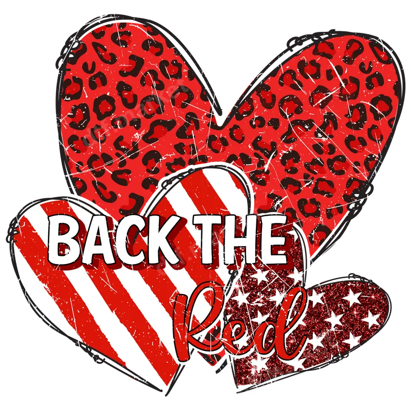 Back The Red Patriotic Distressed Hearts DTF Transfer