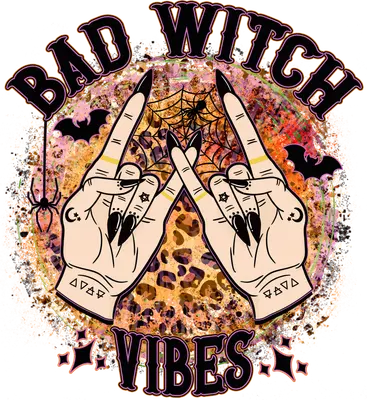 Bad Witch Vibes DTF Transfer | Gothic Hands Leopard Print Halloween