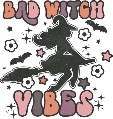Bad Witch Vibes DTF Transfer - Retro Halloween Heat Press Design