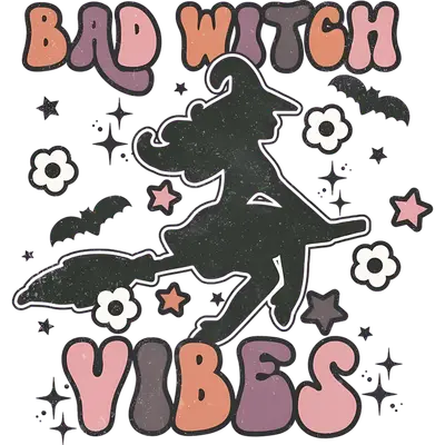 Bad Witch Vibes Retro Groovy Halloween DTF Transfer