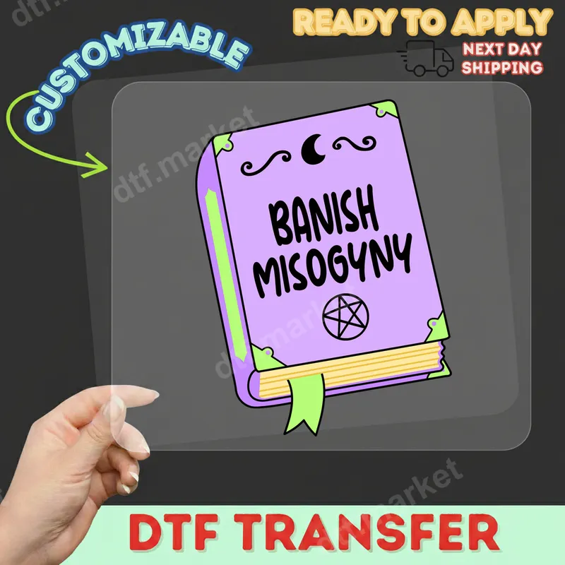 Banish Misogyny Spellbook DTF Transfer | Feminist Witchy Design