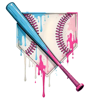 Baseball Gender Reveal DTF Transfer - Pink Blue Dripping Home Plate & Bat