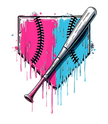 Baseball Gender Reveal DTF Transfer - Pink & Blue Paint Drip Design