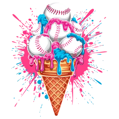 Baseball Ice Cream Cone DTF Transfer | Pink Blue Splatter