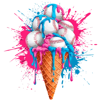 Baseball Ice Cream Cone DTF Transfer | Pink Blue Splatter Design