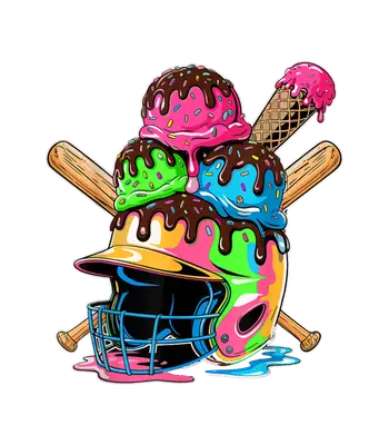 Baseball Ice Cream Helmet & Bats DTF Transfer - Sweet Sport Design