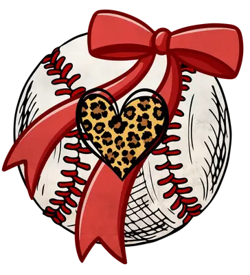 Baseball Leopard Heart Red Bow DTF Transfer Design