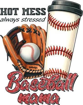Baseball Mama DTF Transfer | Hot Mess Always Stressed Coffee Glove