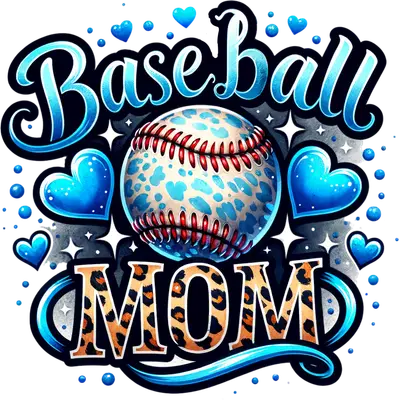 Baseball Mom Leopard Print DTF Transfer with Blue Hearts