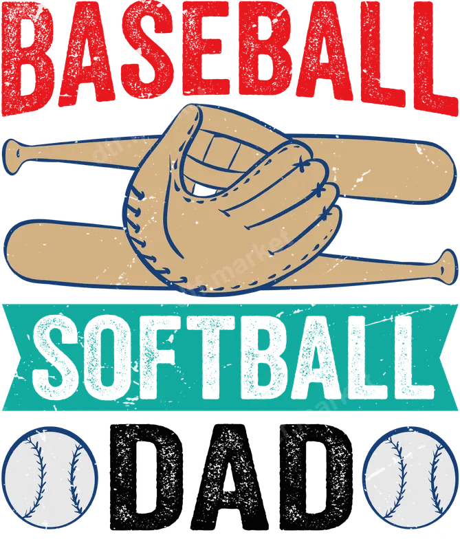 See allThis dynamic Baseball Softball Dad DTF transfer showcases a classic, distressed design perfect for any proud sports parent. Featuring bold red 'BASEBALL,' teal 'SOFTBALL,' and black 'DAD' lettering, it's complemented by crossed bats, a baseball glove, and two detailed baseball graphics. This vintage-inspired design is a ready to press emblem of dedication, celebrating the spirit of the game and the loving support of a dad. Ideal for fathers, grandfathers, coaches, or any devoted fan of the diamond sports, this design is perfect for game days, team events, or casual wear. It makes an excellent gift for Father's Day, birthdays, or as an end-of-season appreciation token. Easily create custom apparel for family members to show support from the stands or on the sidelines, whether it's for little league, high school, or weekend tournaments. Applying this high-quality heat transfer is simple and efficient. Our versatile iron on transfer works flawlessly on a wide range of materials, including cotton, polyester, and various fabric blends. For best results, use a heat press at 300-325°F for 15 seconds with medium pressure, or follow instructions for a household iron. Forget tedious weeding; this heat press ready design comes prepped and ready for immediate application, saving you time and effort. Experience vibrant colors and exceptional durability with our professional-grade DTF film. This apparel transfer is engineered to be crack-resistant, peel-resistant, and incredibly soft to the touch, ensuring your custom shirt design maintains its integrity and look through countless washes. Our strong adhesive provides a lasting bond, making it a reliable choice for long-term wear on your favorite garments.