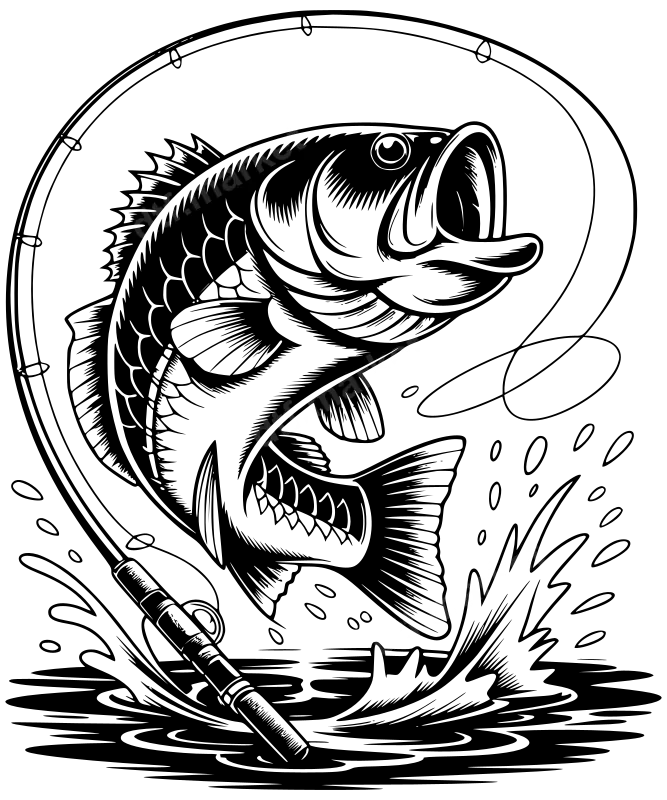 Bass Fishing Rod Jump DTF Transfer - Ready to Press Fish Design