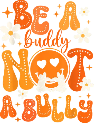 Be A Buddy Not A Bully DTF Transfer - Groovy Smiley Face Kindness Design