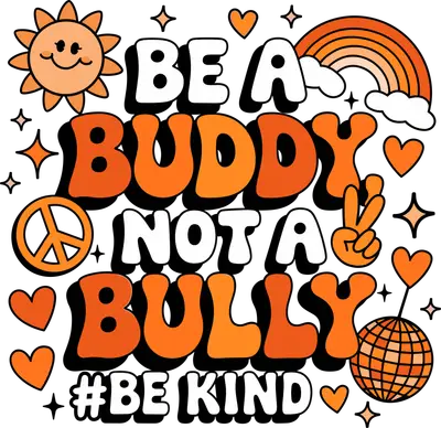 Be A Buddy Not A Bully DTF Transfer - Retro Kindness Groovy Design