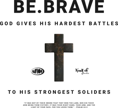 This powerful "Be Brave" DTF transfer features a striking rustic cross, symbolizing enduring faith and resilience. Flanked by the impactful messages "GOD GIVES HIS HARDEST BATTLES TO HIS STRONGEST SOLDIERS," "SAVIOR," and "King of Kings," this design inspires courage and unwavering belief. Below, Psalm 44:3 grounds the artwork in biblical truth, offering a profound statement of divine strength. This "ready to press" design is perfect for those seeking to wear their faith boldly and beautifully. This inspirational "iron on transfer" is ideal for individuals seeking daily motivation, church communities, youth groups, and anyone looking to share a message of spiritual fortitude. It makes a thoughtful gift for friends and family facing challenges, or as a unifying emblem for prayer groups and Christian events. Small t-shirt businesses and crafters will appreciate this meaningful "heat transfer design" for creating custom apparel that resonates deeply with customers. Applying this "heat press transfer" is quick and easy, making it perfect for personal projects or commercial use. It adheres beautifully to a wide range of materials, including cotton, polyester, cotton-poly blends, and even nylon. For best results, use a heat press at 300-325°F for 15 seconds with medium pressure, or apply with a household iron. Enjoy the simplicity of no weeding required—just peel and press! Create stunning "custom t-shirts," hoodies, sweatshirts, tote bags, pillow covers, and denim jackets that stand out. For lasting durability, wash garments inside out and tumble dry on low. Experience superior quality with this "ready to press transfer." It boasts vibrant, full-color printing with crisp details and a rich, textured look for the cross. Designed to be crack-resistant and soft to the touch, it avoids the heavy, stiff feel of traditional vinyl. Each "direct to film transfer" is meticulously printed on premium DTF film, featuring a strong adhesive backing to ensure professional, long-lasting results every single time.