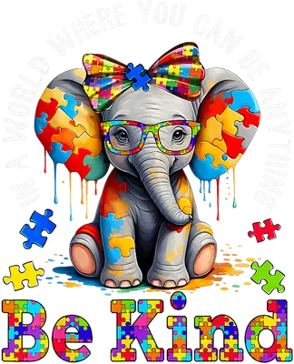 Be Kind Autism Awareness Elephant DTF Transfer | Motivational Quote Design