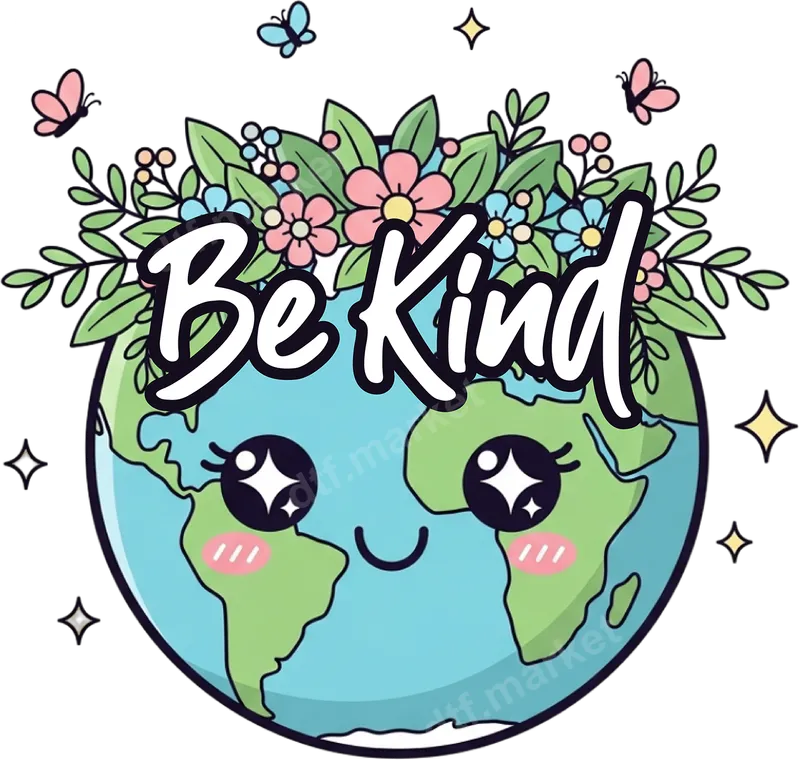 See allEmbrace positivity with our charming 'Be Kind' DTF transfer, featuring a sweet, smiling Earth adorned with a vibrant crown of pastel flowers and lush greenery. Delicate butterflies flutter around, adding a touch of whimsy, while the inspiring 'Be Kind' message takes center stage in an elegant script. This delightful design is a premium direct to film (DTF) transfer, delivered to you ready to press onto your favorite apparel or accessories, making customization effortless. This feel-good heat press transfer is ideal for anyone looking to spread a message of compassion and environmental awareness. Perfect for teachers, students, parents, and eco-conscious individuals, it makes a thoughtful gift for Earth Day, birthdays, or simply as an everyday reminder to choose kindness. Create unique custom t-shirts, tote bags, or hats for school events, community gatherings, or personal wear that radiates positive vibes. Applying this high-quality iron on transfer is a breeze! Designed to adhere seamlessly to a wide range of fabrics including cotton, polyester, and their blends, it offers incredible versatility. For best results, use a heat press at 300-325°F for 15 seconds with medium, even pressure. Alternatively, a household iron can be used for smaller projects, ensuring consistent heat. Enjoy the convenience of a ready to press design that requires no tedious weeding. Experience superior quality with this durable apparel transfer. Our direct to film transfers boast incredibly vibrant colors that pop, along with excellent wash durability, ensuring your design remains crack-resistant and soft to the touch even after many washes. Crafted using professional-grade DTF film and strong adhesive, this heat transfer guarantees a long-lasting, retail-quality finish that will impress.