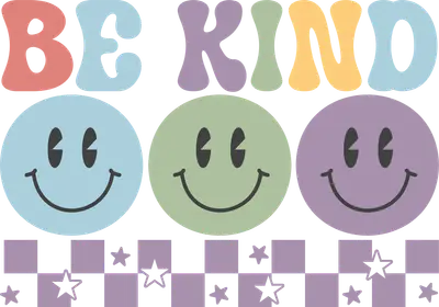 Be Kind Groovy Smiley Faces DTF Transfer | Retro Checkered Stars